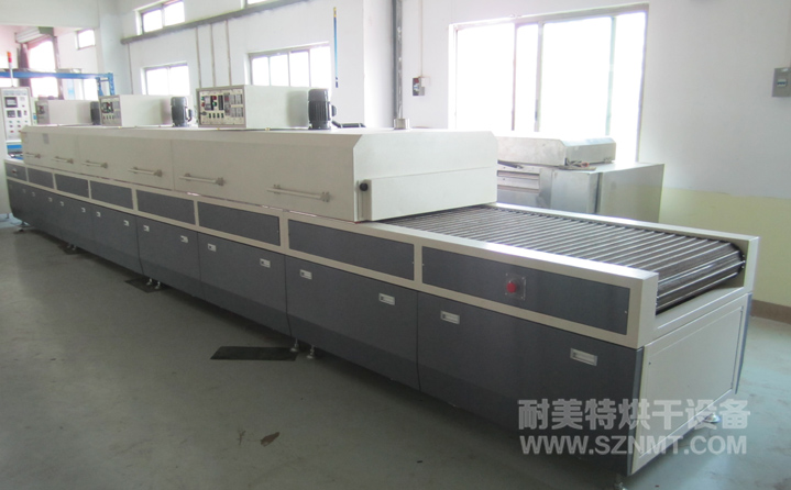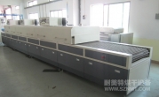 烘干爐部分外形尺寸:總長(zhǎng)18米,外寬1.34米,網(wǎng)帶寬1.1米,總高1.22米,進(jìn)料部分長(zhǎng)10米,烘干部分長(zhǎng)6.0米,緩沖區(qū)長(zhǎng)0.3米,冷卻區(qū)1.2米,出料部分長(zhǎng)0.5米;